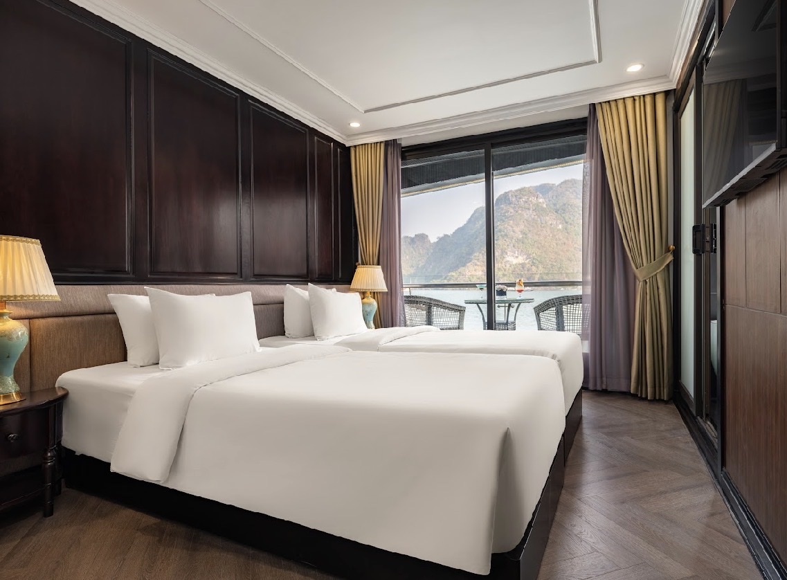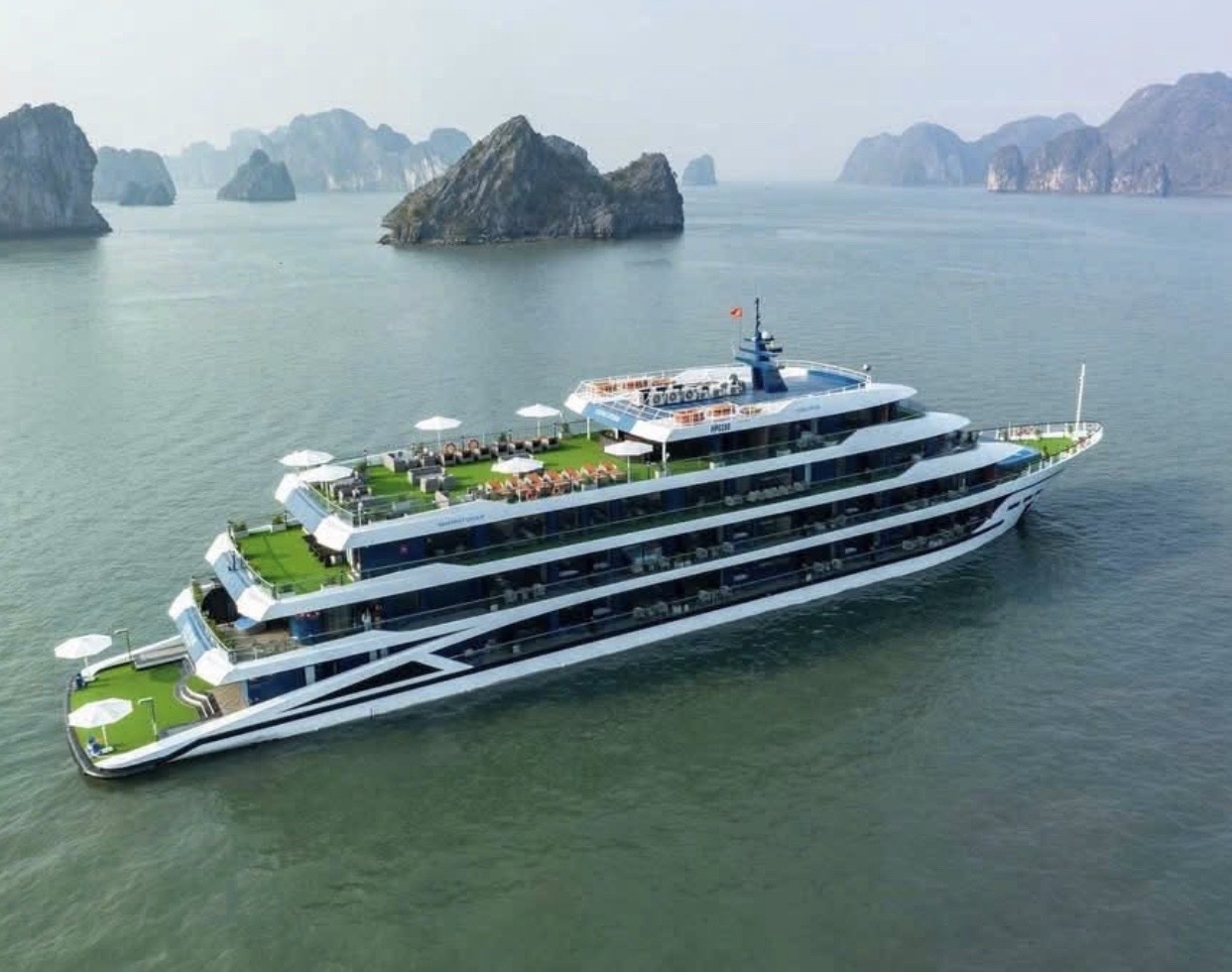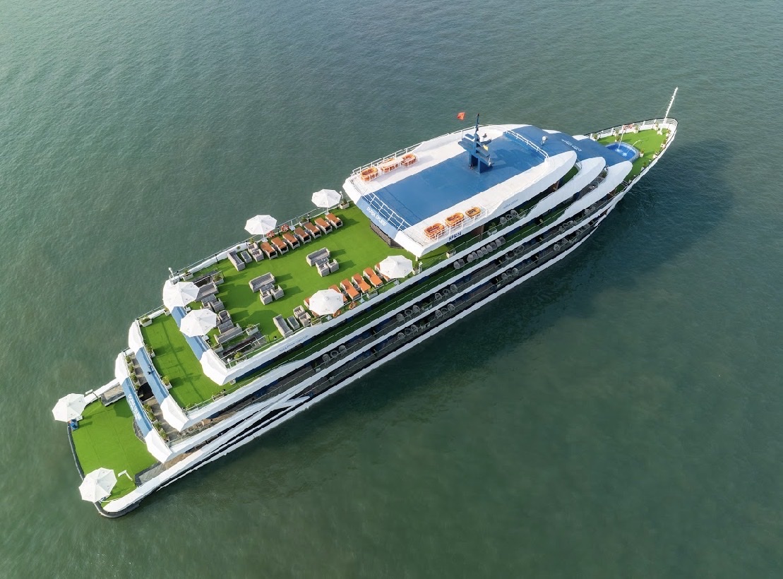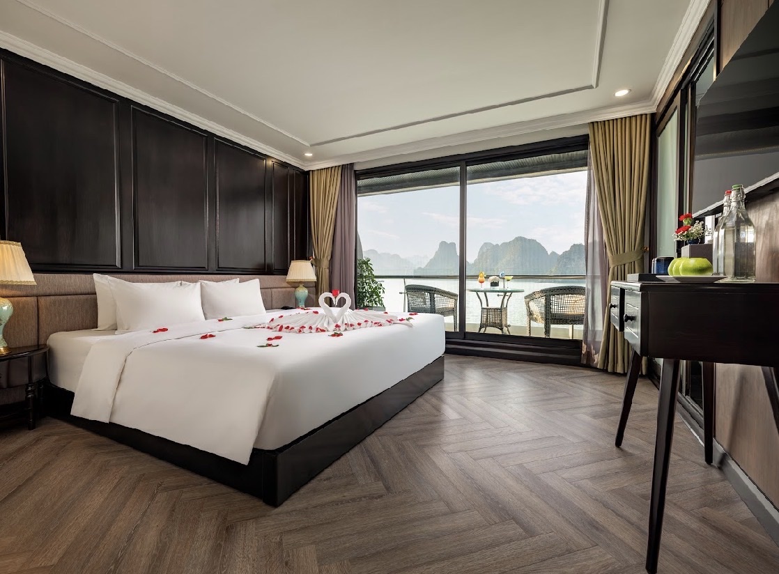 - 19h00: Quý khách thưởng thức bữa tối với set menu tại nhà hàng trên du thuyền