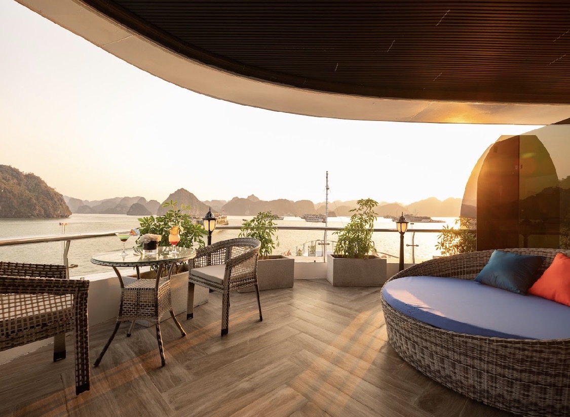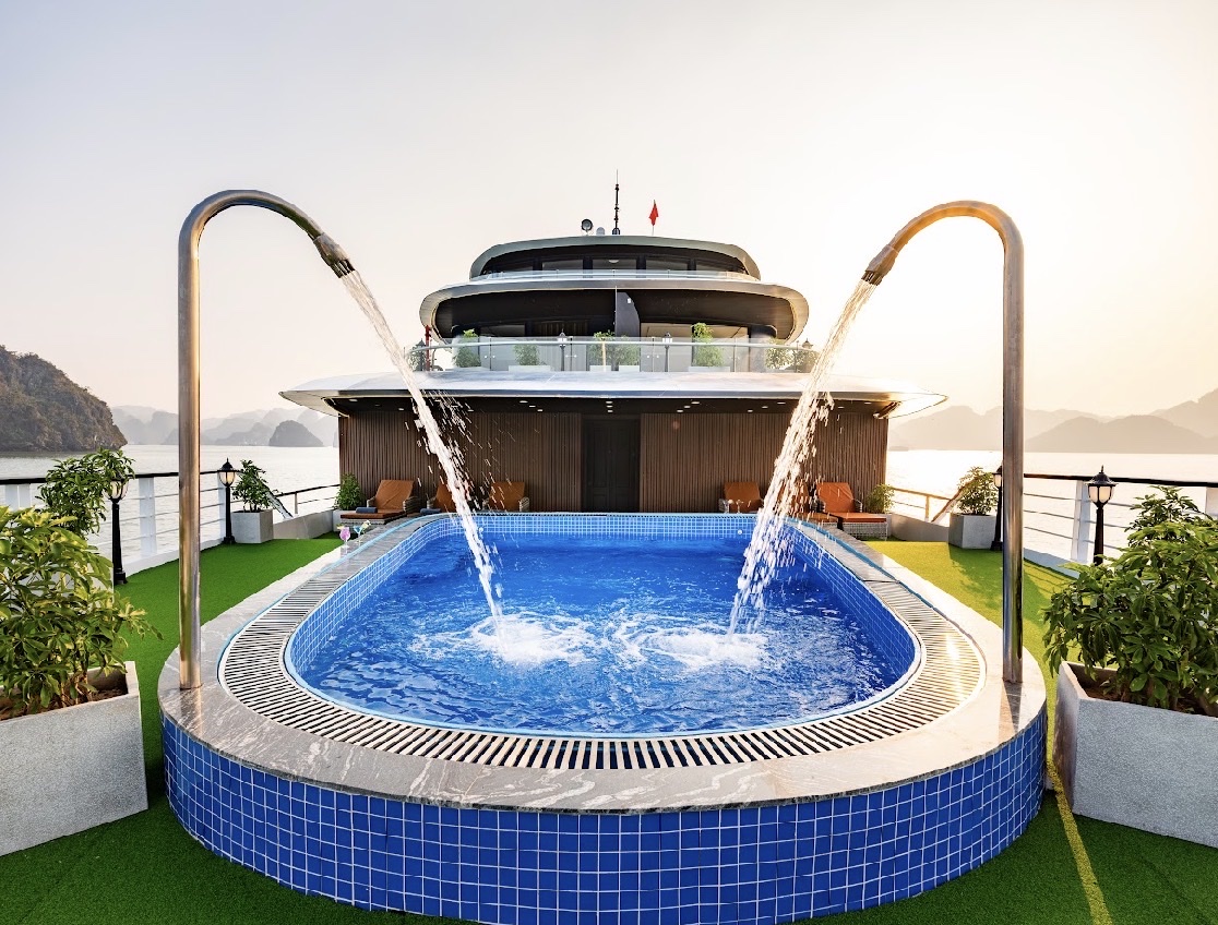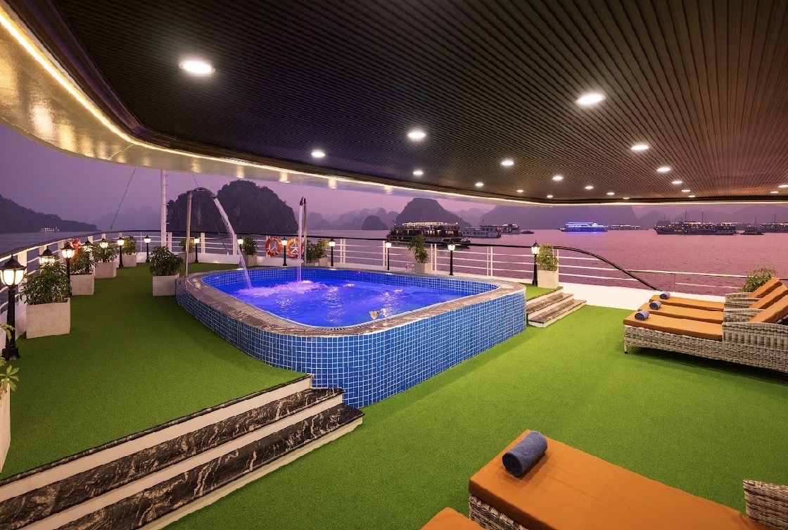 + Lựa chọn 3: Sử dụng Jacuzzi (Nằm ở mũi tàu tầng 3), hoặc bạn có thể tắm nắng trên Sundeck