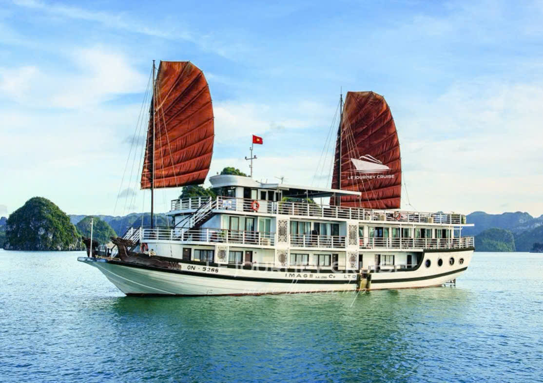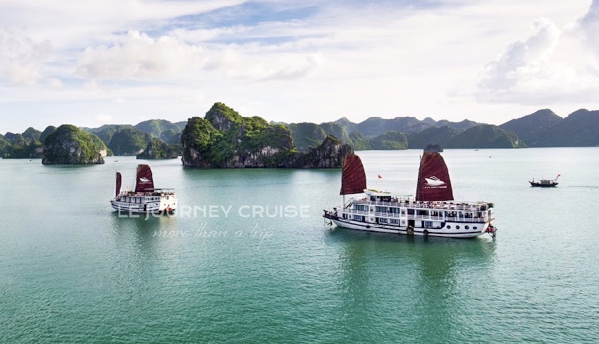 12:30 Quý khách lên Du Thuyền Le Journey. Thủy thủy đoàn chào đón quý khách với đồ uống với khăn lạnh trên tàu trước khi nhận phòng. Tàu rời bến Tuần Châu và đưa quý khách khám phá vẻ đẹp của Vịnh Hạ Long. Trên đường đi, du khách được đi những địa điểm đẹp nhất của Vịnh Hạ Long và chiêm ngưỡng sự hùng vĩ của vịnh Hạ Long với hàng ngàn hòn đảo đá vôi lớn nhỏ. Tàu di chuyển đến khu vực Hang Sửng Sốt