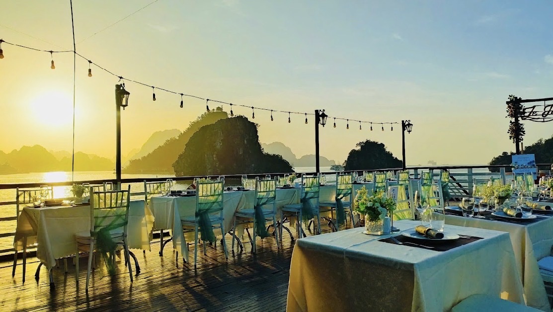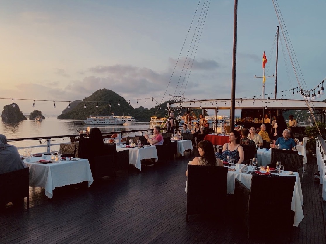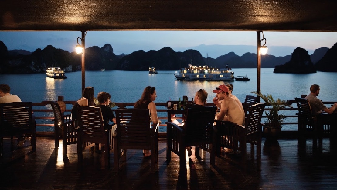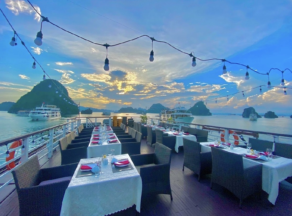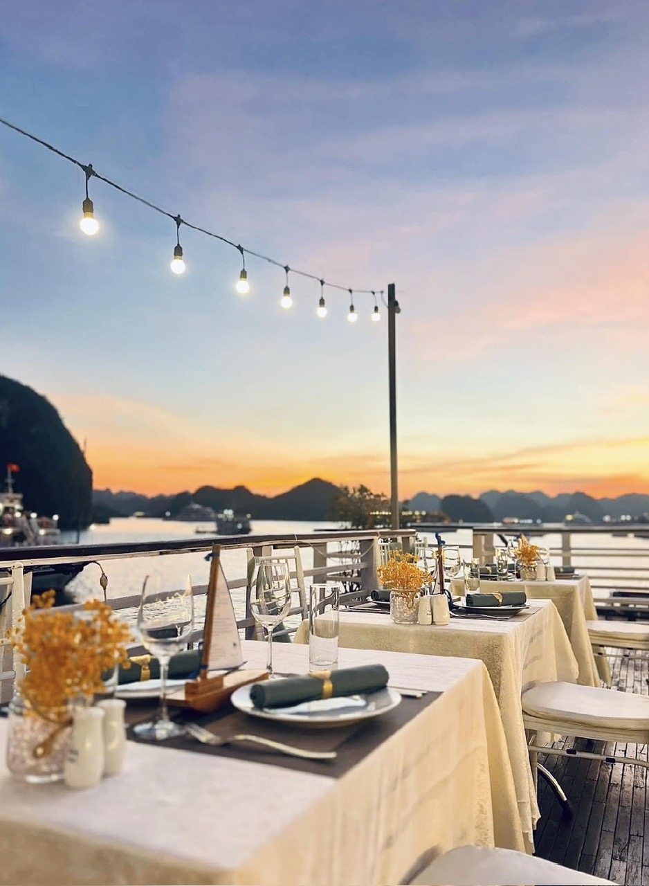 19:00 - 20:00 Quý khách sẽ thưởng thức bữa tối trên Sundeck nếu thời tiết đẹp.
