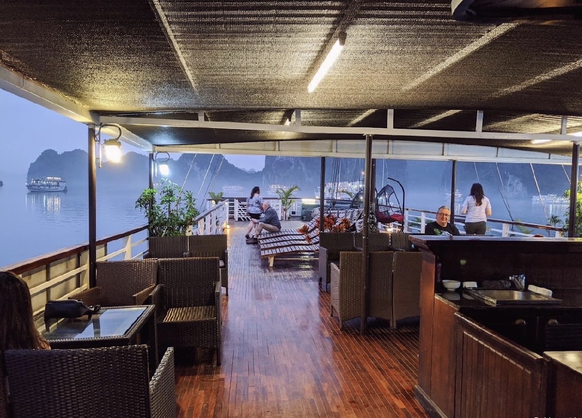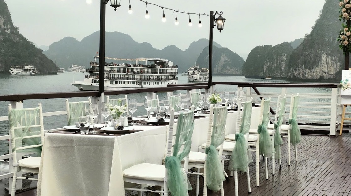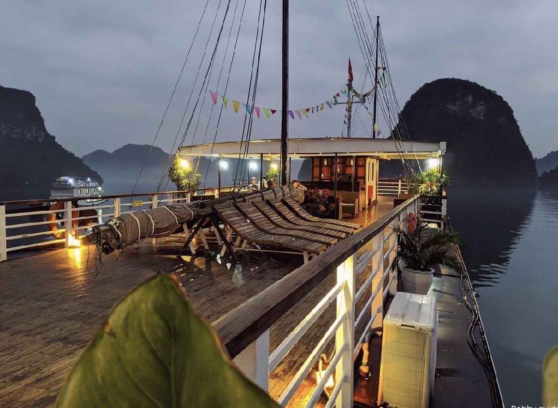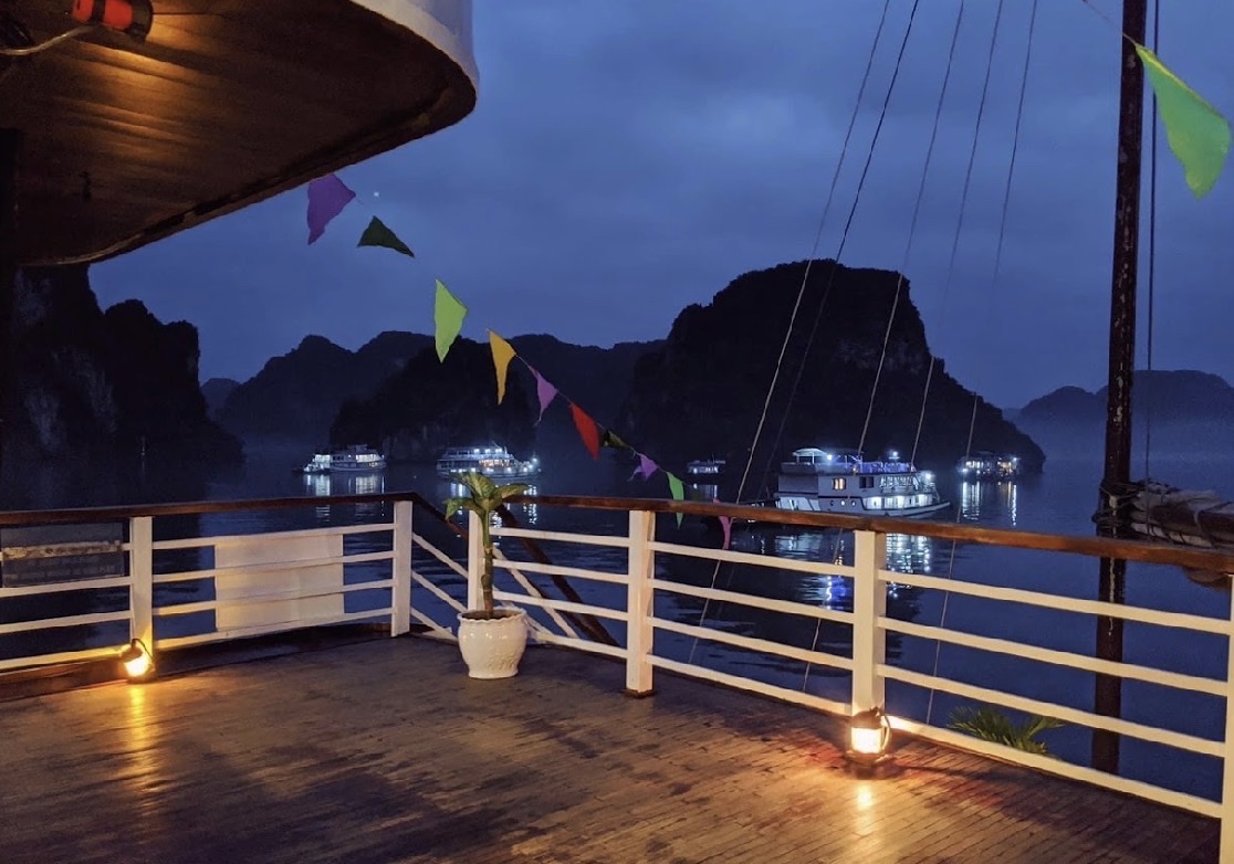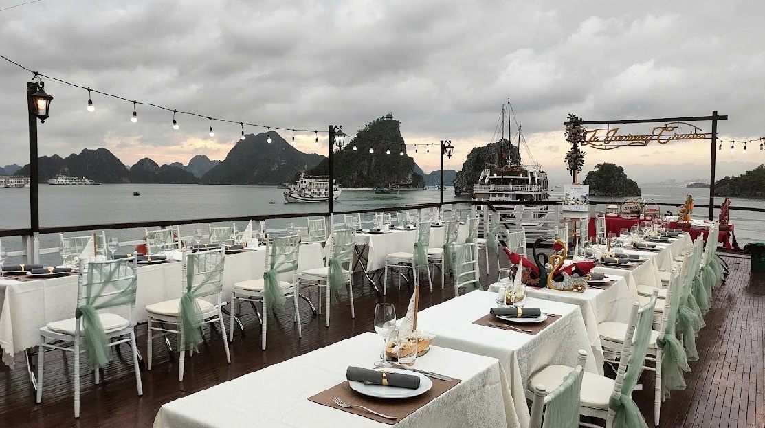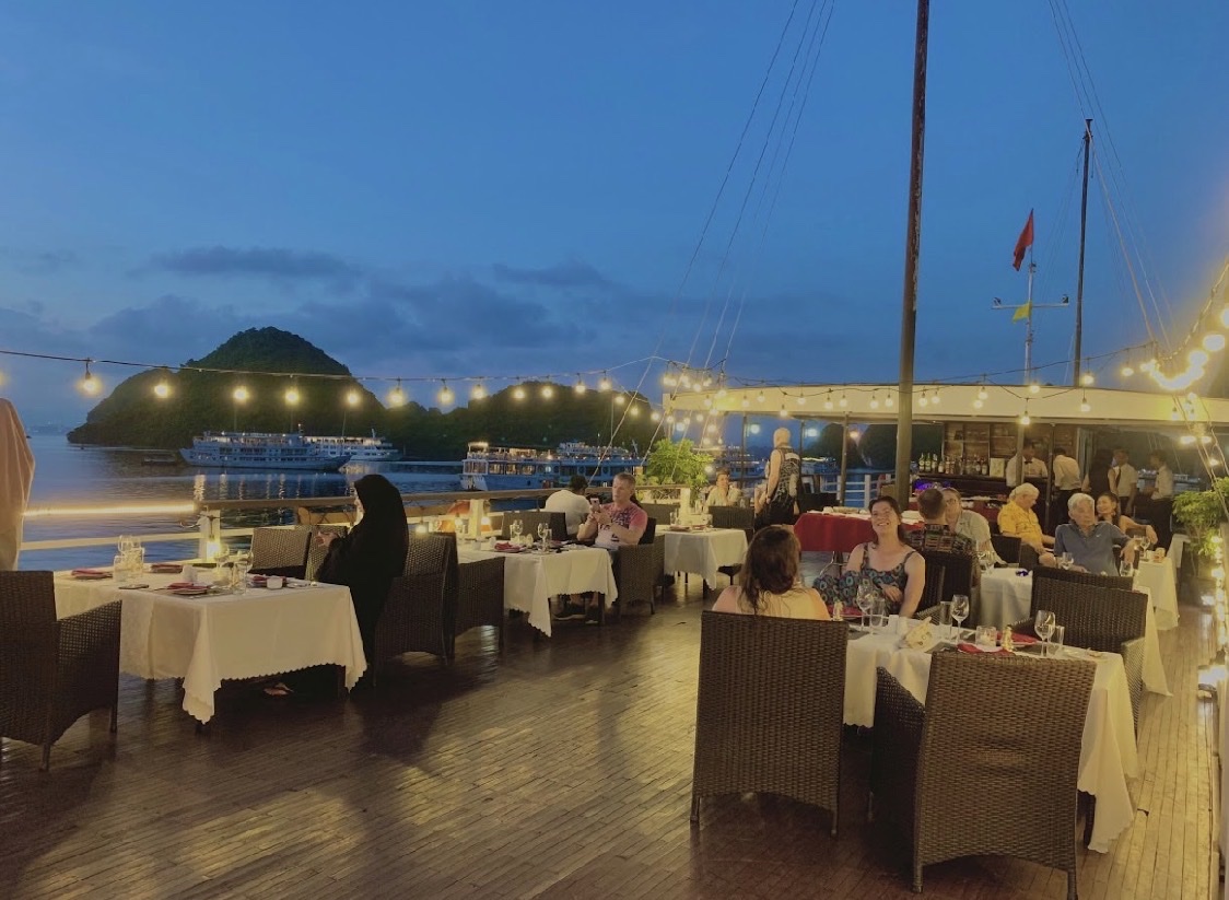 19:00 - 20:00 Quý khách sẽ thưởng thức bữa tối trên Sundeck nếu thời tiết đẹp.